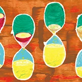 カレーの味がとってもさわやかで果物と玉葱の甘みのやさしさを感じて、時間をかけて作っていそうなイメージを砂時計に見立てて、メインのスパイシーのイメージを背景の色で合わせました。
