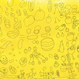 フルーティーな甘口カレーをイメージしました。赤いリンゴ、青いリンゴ、もも、いちじく、絵の中から甘さが出 ていればうれしいです。