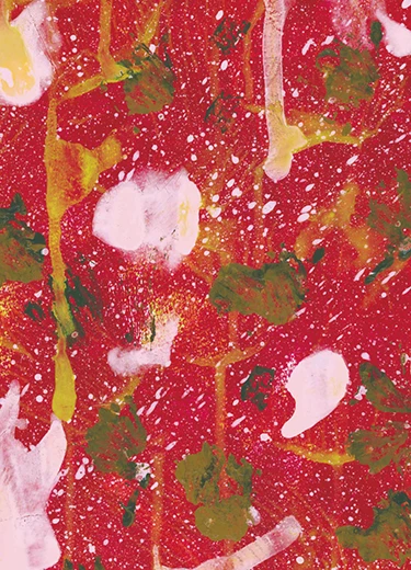 赤を基調にゴールドや茶、ピンクを重ねたアートが、ハヤシビーフの濃厚さとフルーティーな甘酸っぱさを表現しています。大胆で洗練された色使いが、大人の味わいを直感的に伝えます。