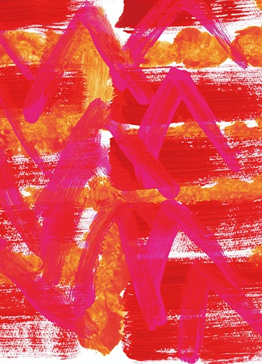 赤・ピンク・オレンジの大胆な配色が、濃厚で刺激的な旨味を力強く表現しています。鮮やかな色彩が、スパイシーなトマトのコク、ブラックオリーブの深み、パプリカの香りを連想させます。